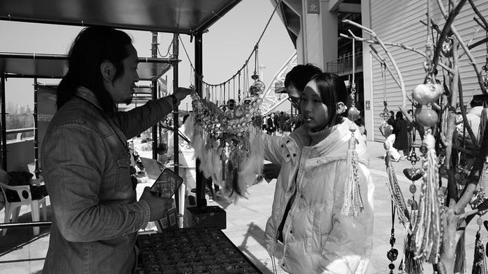 赛场内的比赛尚未开始,赛场外的热闹早已拉开帷幕。市体育中心外的文旅集市让足球赛事与地方文化和特色产业相融,秀洲特色元素是其中一抹亮眼的色彩。新塍镇洛东村谦石花草间的文创摊位前人头攒动。南湖菱挂件、银杏烧箔画、植物拓染等文创产品整齐摆放,每一件作品都饱含田园气息与文化底蕴。
